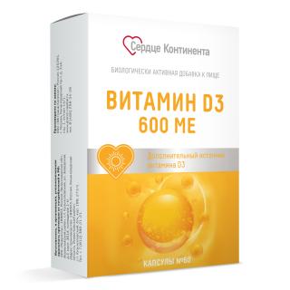 Перейти к основному содержанию Витамин D3 600 ME Сердце Континента капс. №60