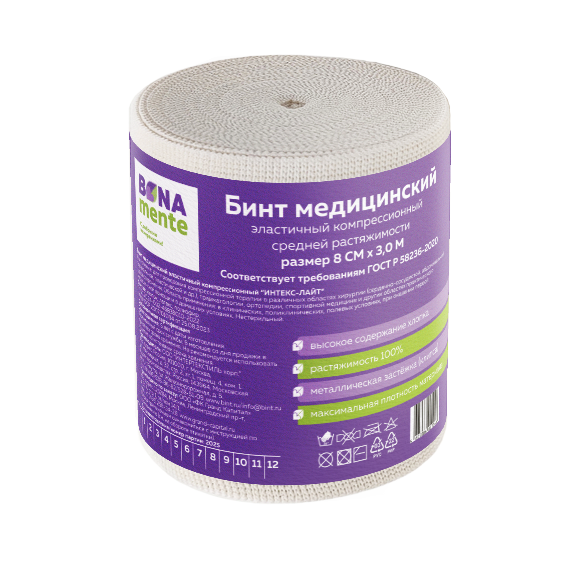 Бинт Bona Mente! Лайт эластичный компрессионный СР с застежкой 3,0мх8см