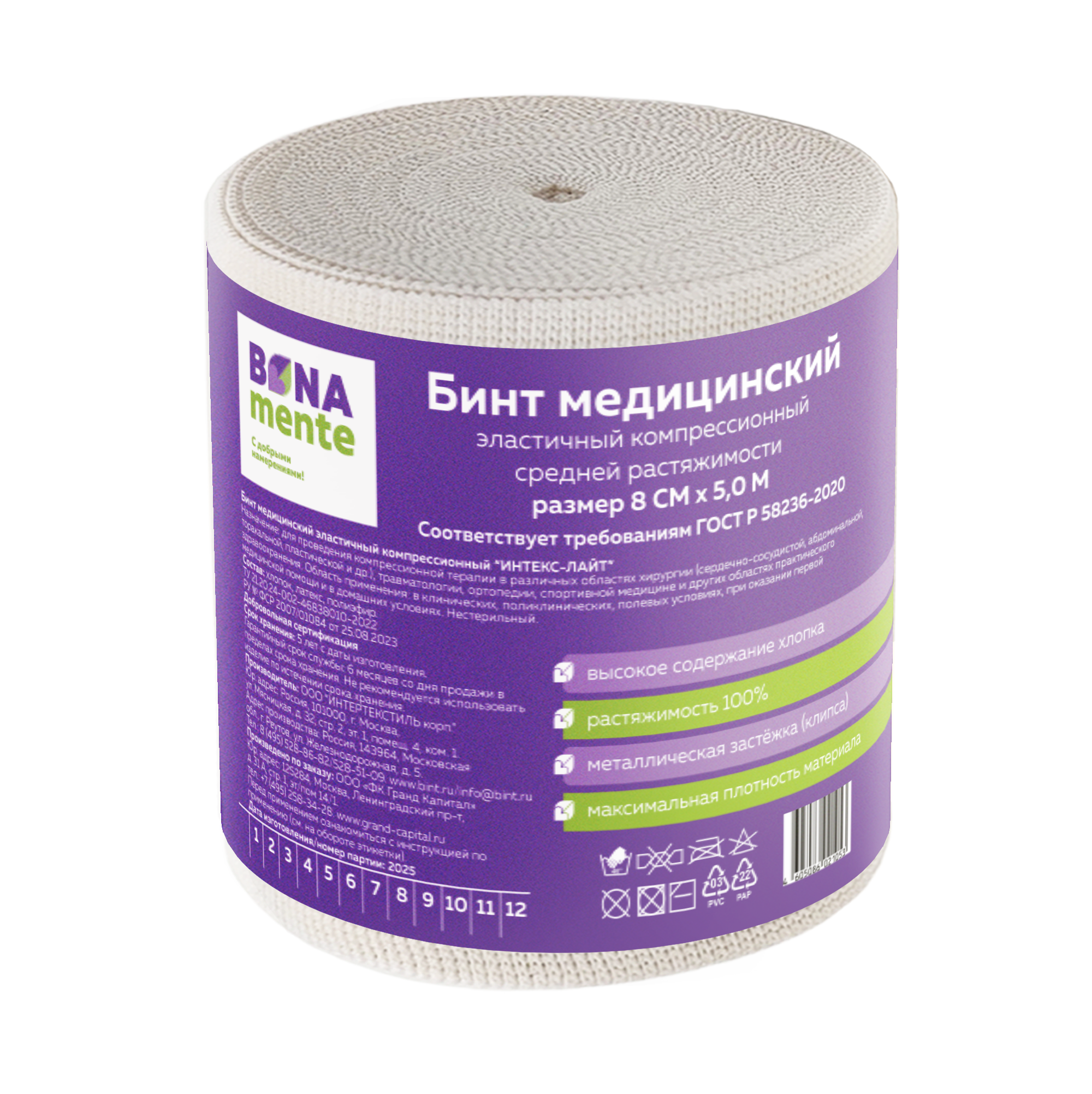 Бинт Bona Mente! Лайт эластичный компрессионный СР с застежкой 5,0мх8см
