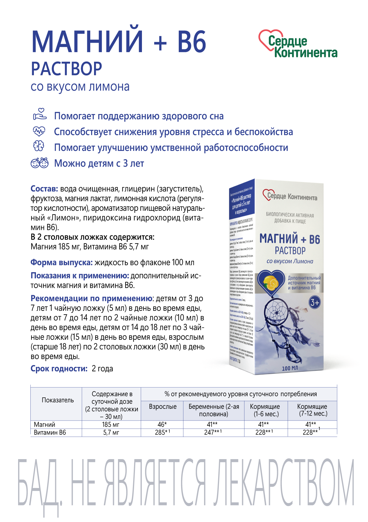 Магний B6 Сердце Континента раствор для детей с 3-х лет и взрослых флакон 100мл