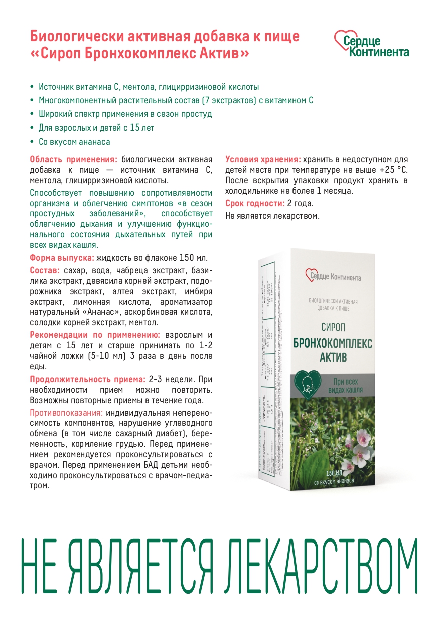 Сироп Бронхокомплекс Актив Сердце Континента 150 мл