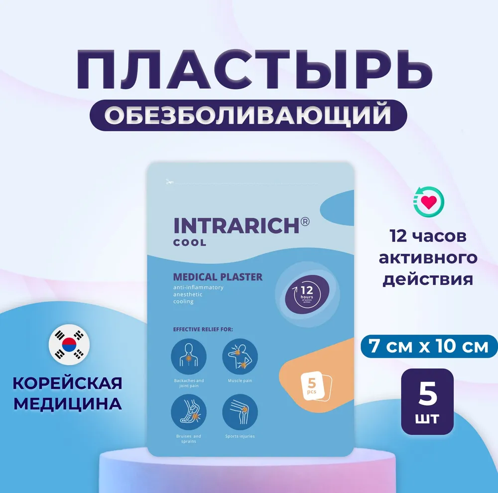 Пластырь медицинский INTRARICH COOL обезболивающий охлаждающий 5шт