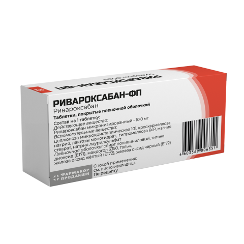 – Для профилактики образования тромбов в венах (венозная тромбоэмболия, ВТЭ) после больших ортопедических операций на нижних конечностях. Рекомендуемая доза составляет по 1 таблетке препарата Ривароксабан-ФП 10 мг один раз в день.