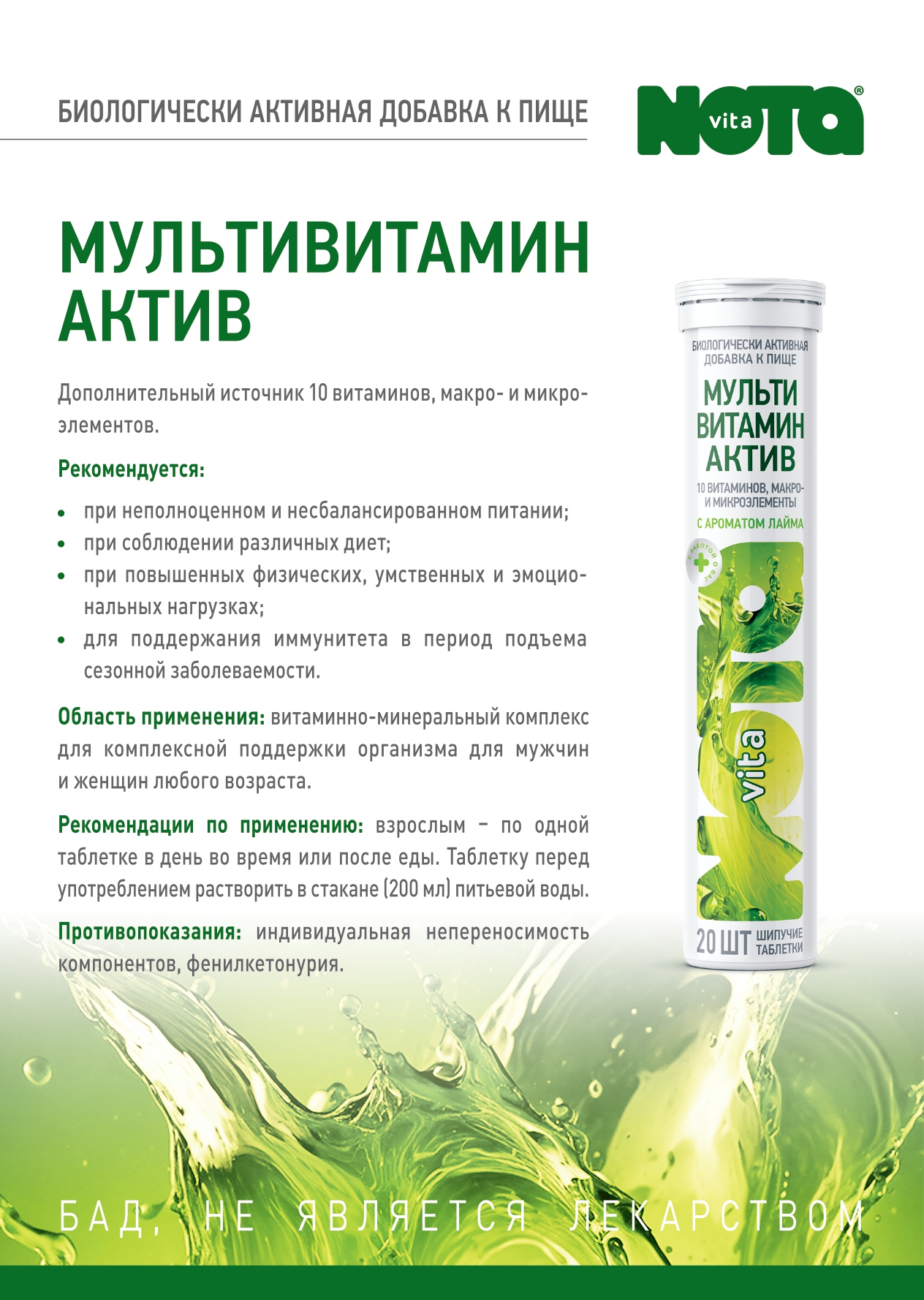 Мультивитамин Актив Nota Vita таб. шип. 20шт